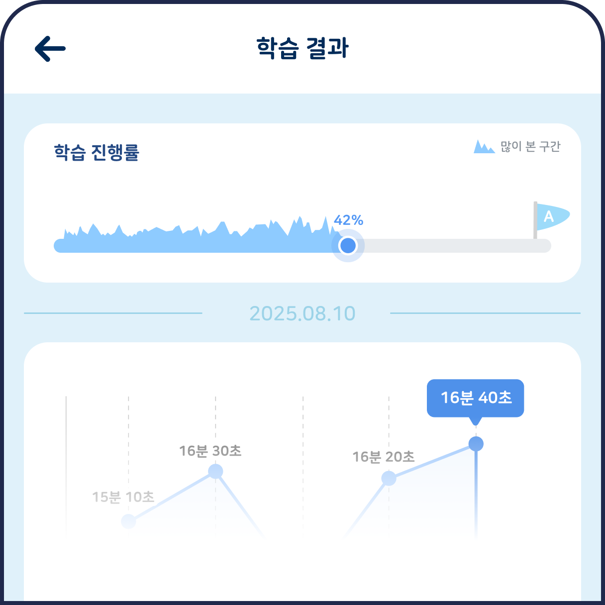 ④ 스스로 완전학습이 가능한 AI 맞춤 학습 관리가 이루어진 후, 실시간 디테일한 학습 현황 분석 및 피드백이 포함된 AI 학습 리포트가 제공됩니다.
