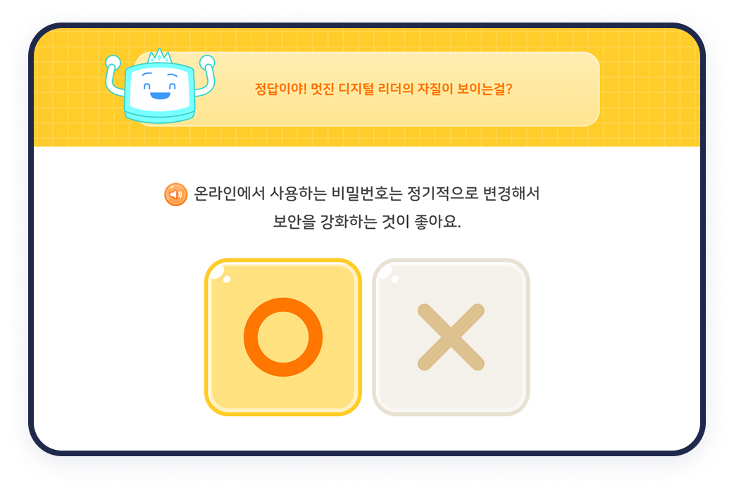 ② 온도(ONDO)에서는 디지털 기술을 올바르게 이용하는 디지털 매너 및 감성 지능 학습을 흥미로운 애니메이션과 OX 퀴즈를 통해 진행합니다.
